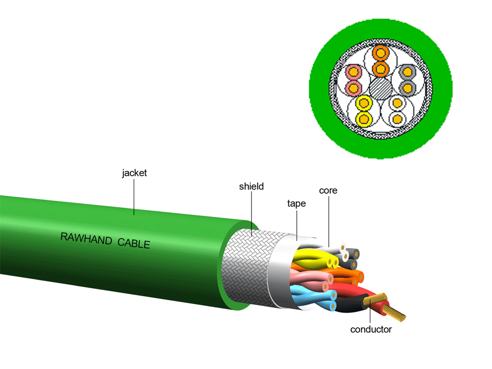 電纜結構: 導體:裸銅或鍍錫銅絲絞合 絕緣:PVC 芯線對絞 屏蔽:高遮蔽率鍍錫銅絲屏蔽 外被:PVC 外被顏色:綠色